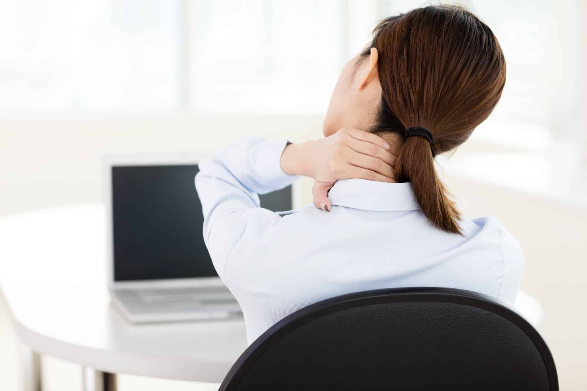 Les personnes qui ont un travail sédentaire (travail de bureau) développent fréquemment des douleurs au cou, en raison de l’adoption de postures inadéquates et/ou prolongées. Par conséquent, il est important de se doter d’un poste de travail ergonomique. Par exemple, la hauteur de l’écran ne devrait être ni trop haut, ni trop bas, mais à la hauteur des yeux.